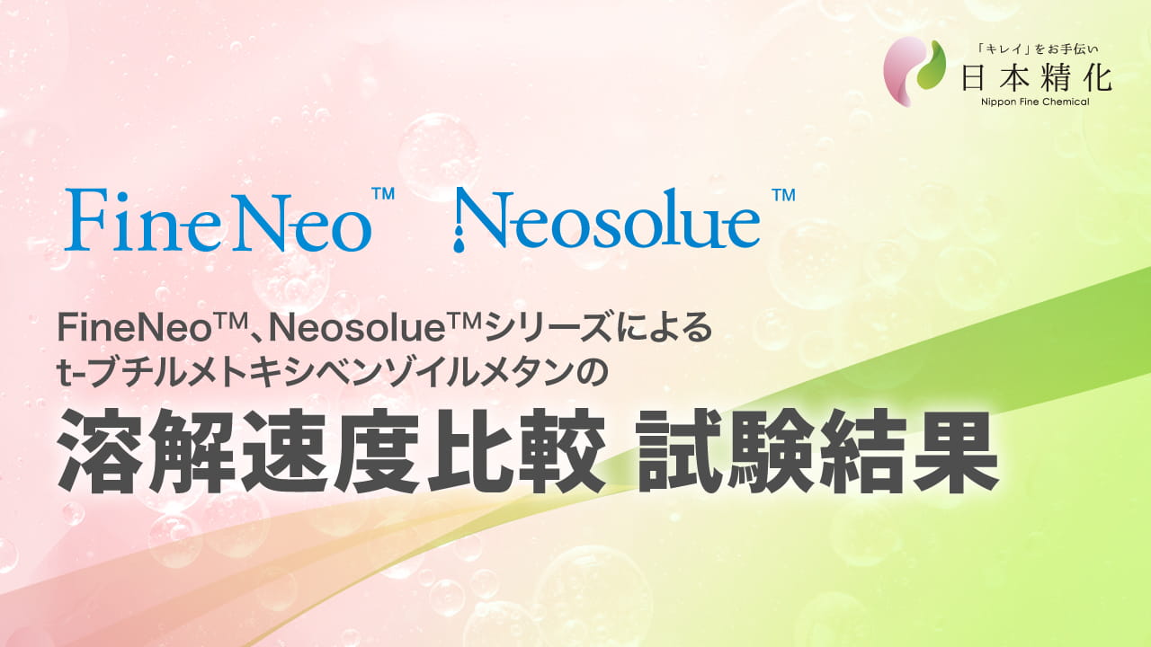 「FineNeo」、「Neosolue」シリーズによる紫外線吸収剤t- ブチルメトキシベンゾイルメタンの溶解速度比較試験結果