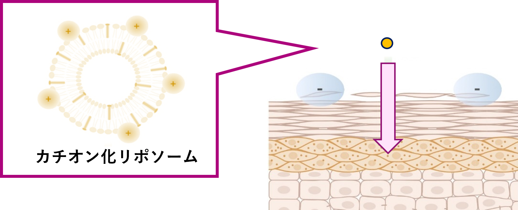 そんな浸透性に優れるリポソームにプラスの電荷を持たせたのが、
