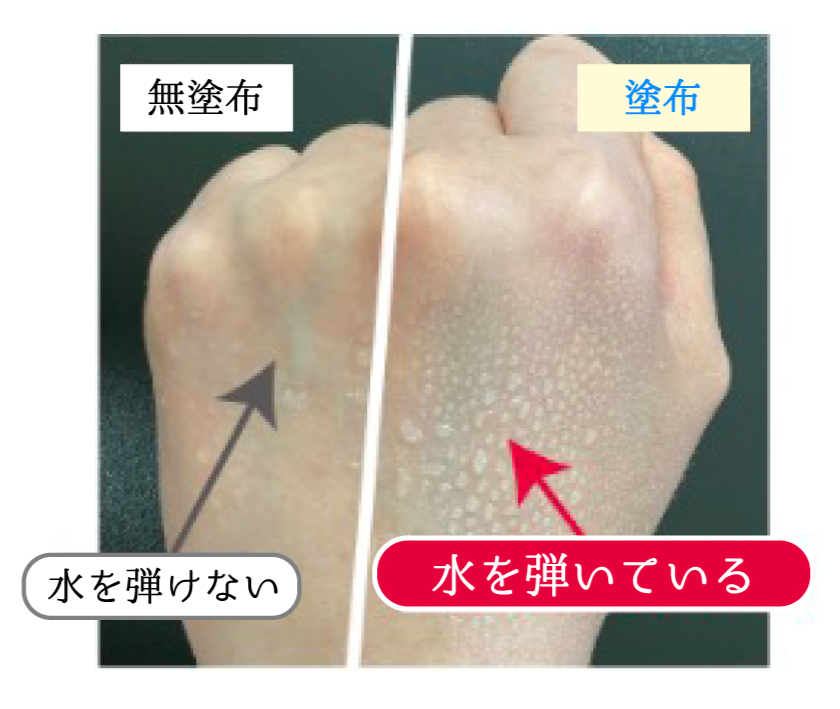 これにより、撥水性と肌なじみを両立させた